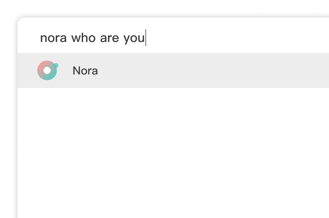Simply type "nora [your question]" to chat directly with multiple AI models, search for information, translate, or create content. Seamlessly connect to more tools and services with MCP protocol support. Your AI assistant is just a second away — smart, efficient, and always ready to help.